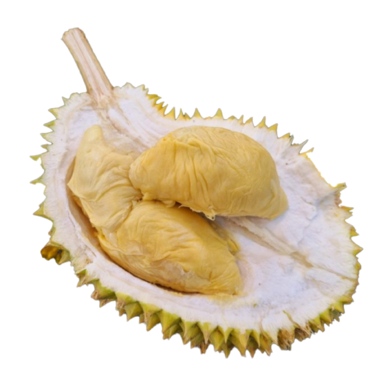 The outer shell of Black Thorn durian is covered in sharp, spiky thorns, giving it a formidable and unique appearance. The color of the thorns can range from pale yellow to brownish-black, adding to its allure. When ripe, the husk splits open to reveal creamy, golden-yellow flesh that is incredibly rich and buttery.